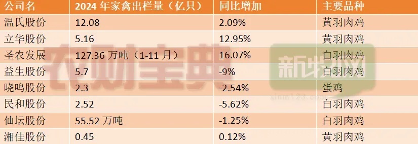数据显示,2024年民和股份商品代鸡苗销量2.52亿只,同比下降5.62%。